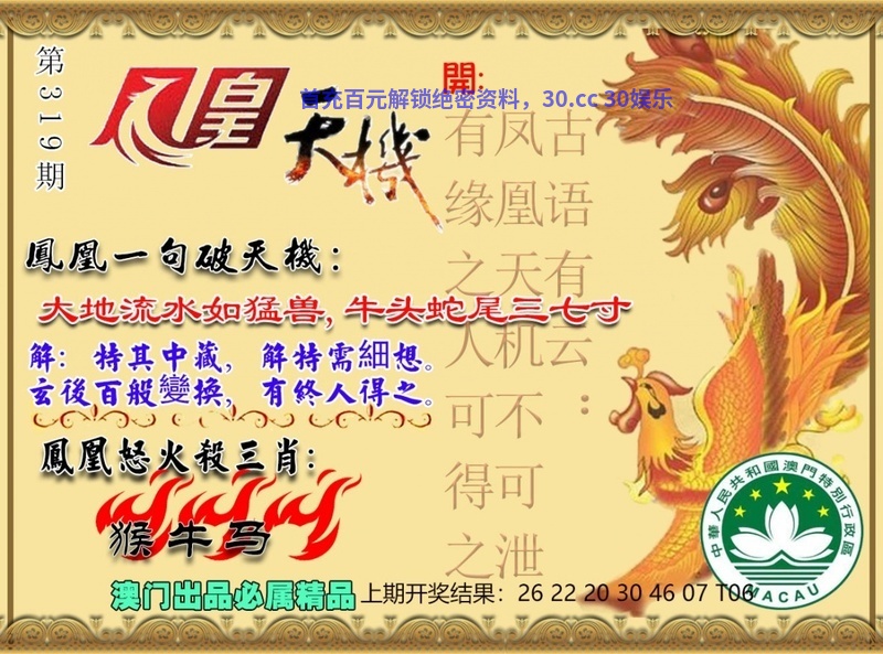 | 319期 澳门三头 ♠034头♠ 开:鸡45准 |